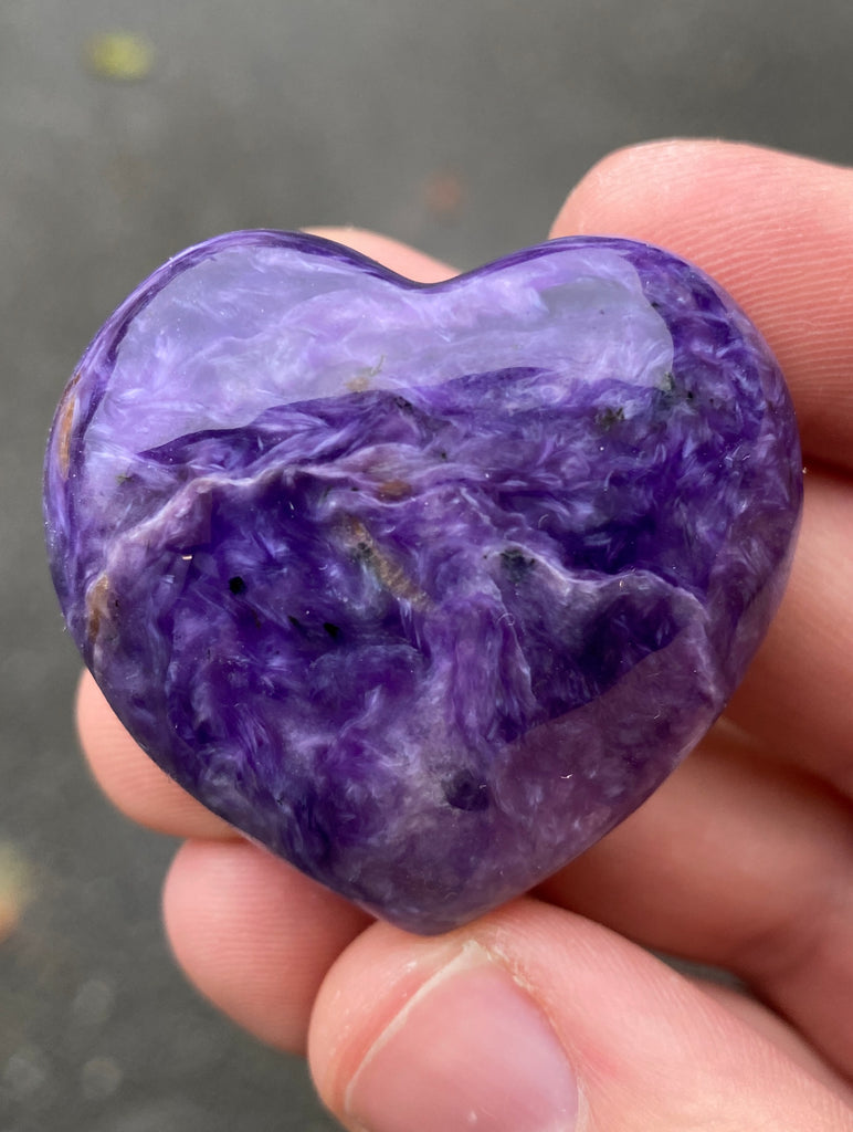 Polerat hjärta av Charoit. Fin kvalité. Du får det hjärta på bilden.
