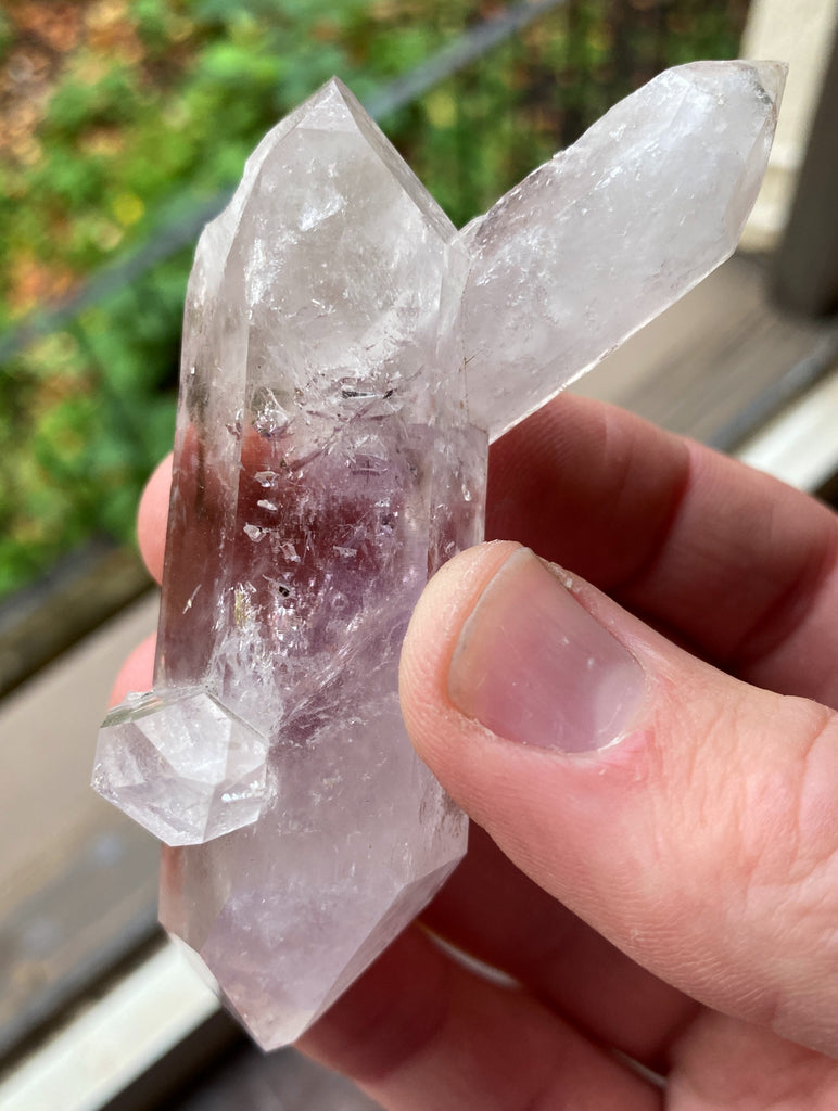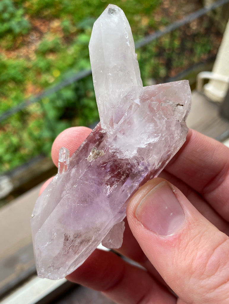 Fin dubbelterminerad Ametist med klar Bergkristall.
