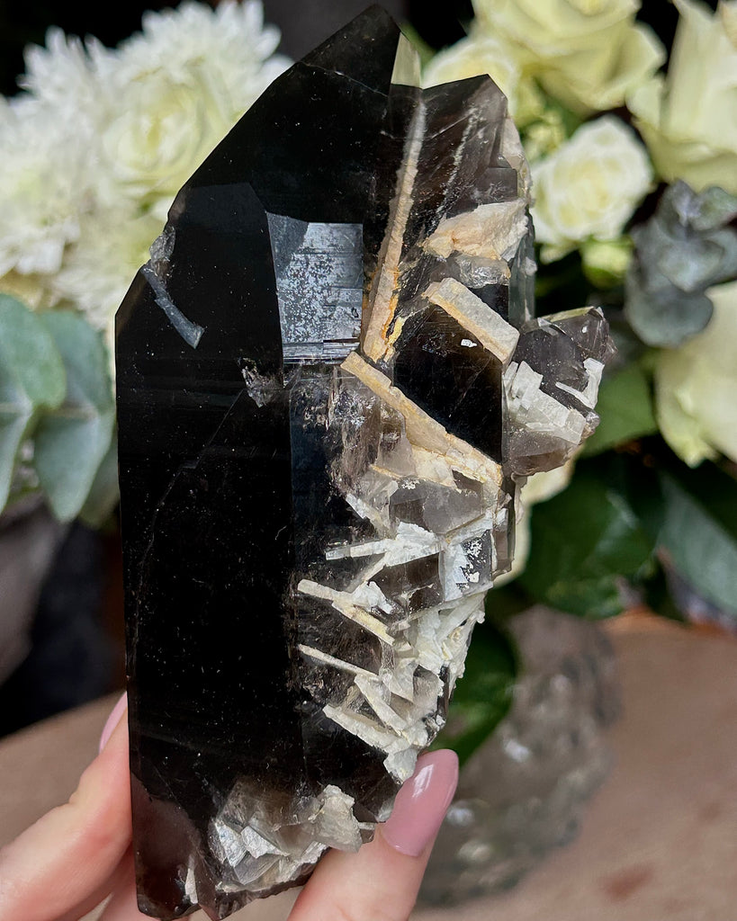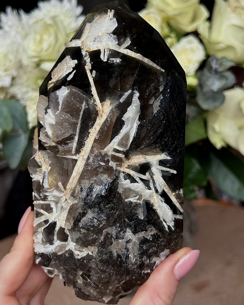 Fin stor spets av Rökkvarts med inslag av Apatit.