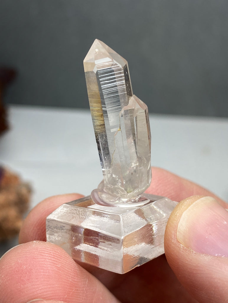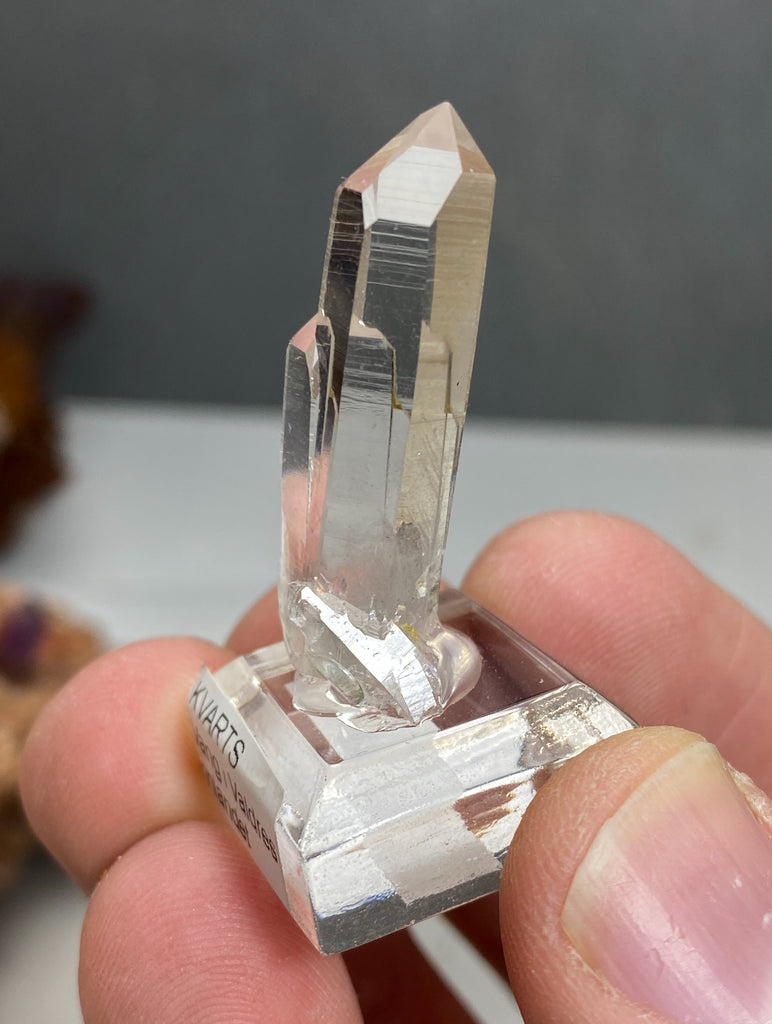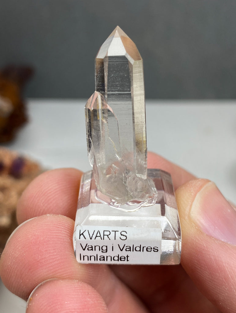 Riktigt fin Bergkristall (Kvarts) spets från Norge. Fastlimmad på displaybas.