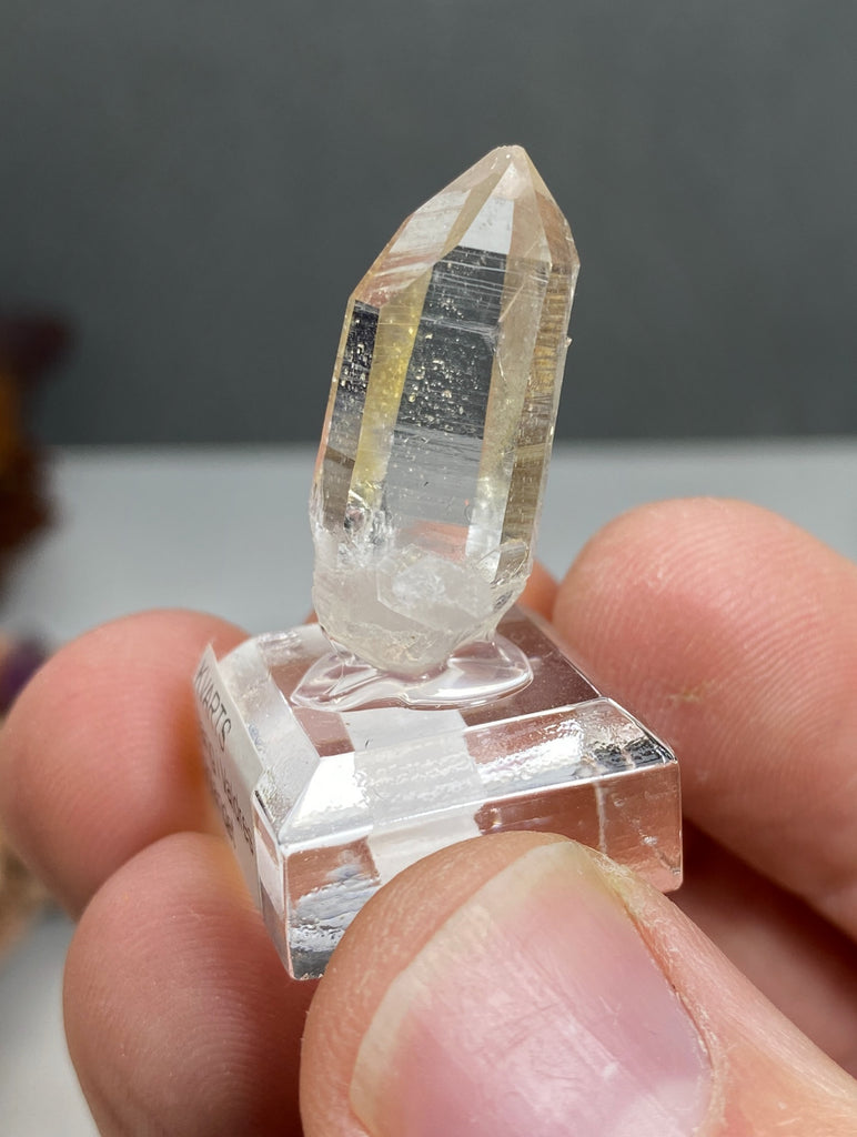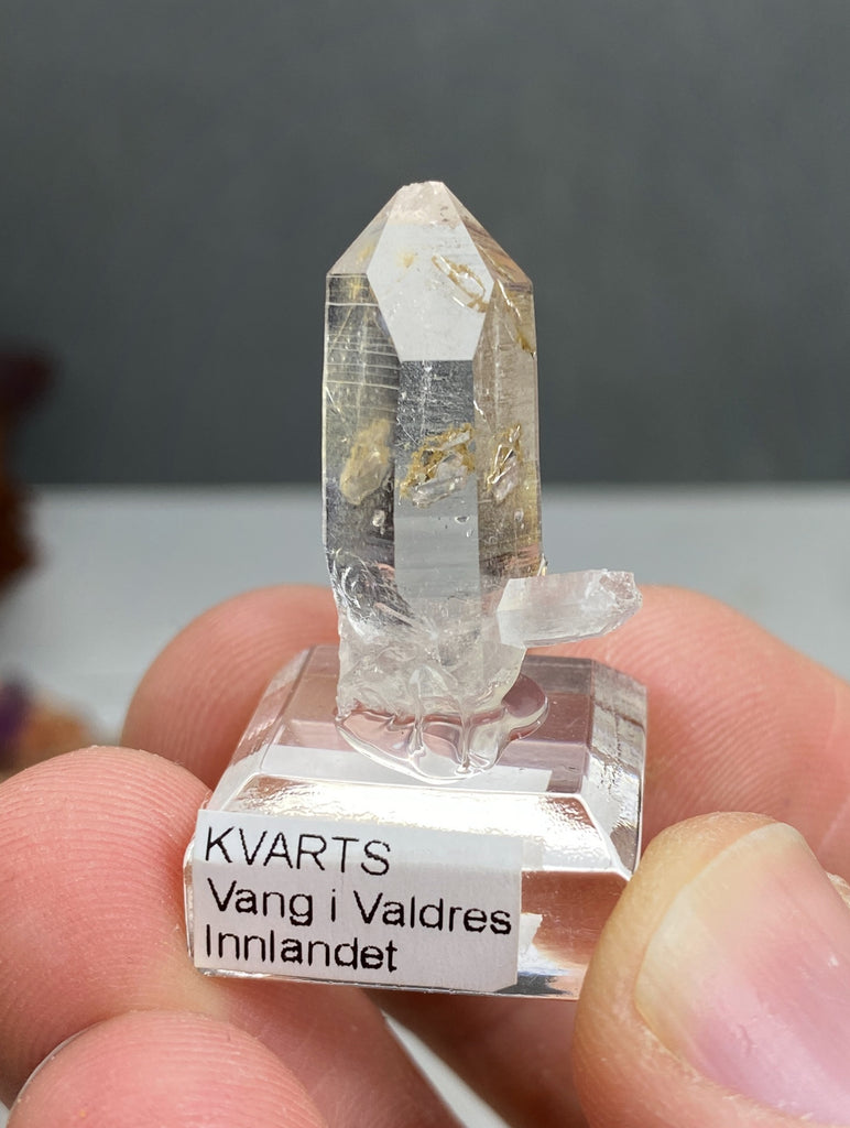 Fin Bergkristall (Kvarts) spets från Norge. Fastlimmad på displaybas.