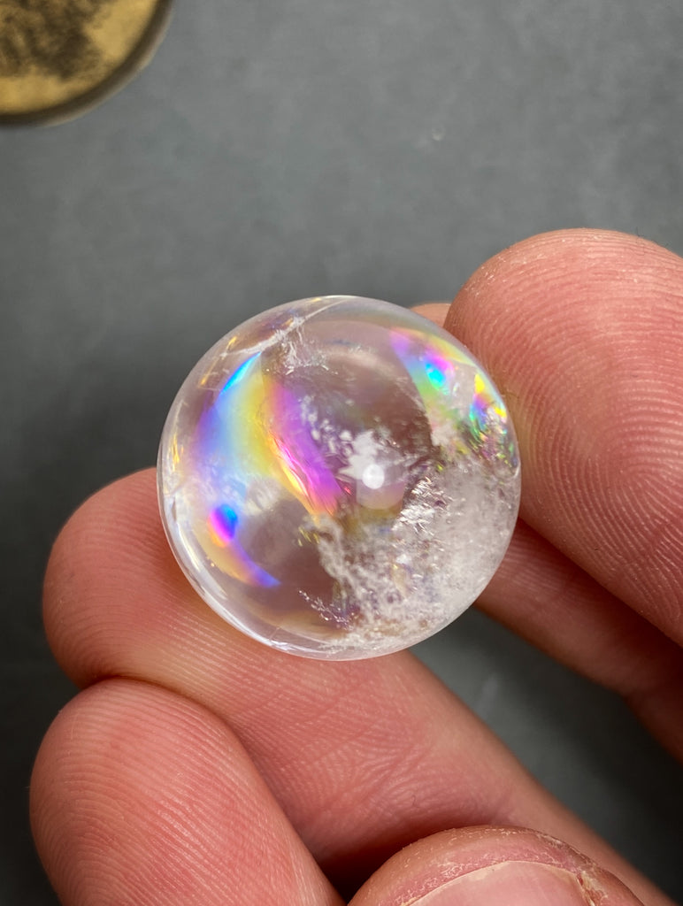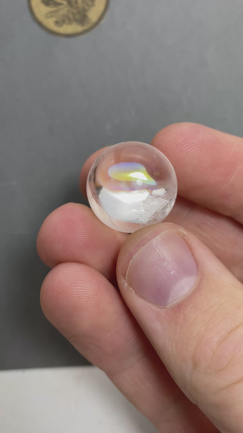 Riktigt fin liten bergkristall kula. Med tydlig regnbåge.