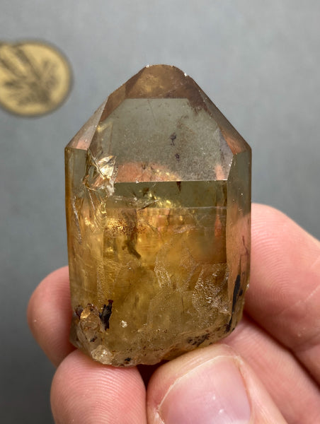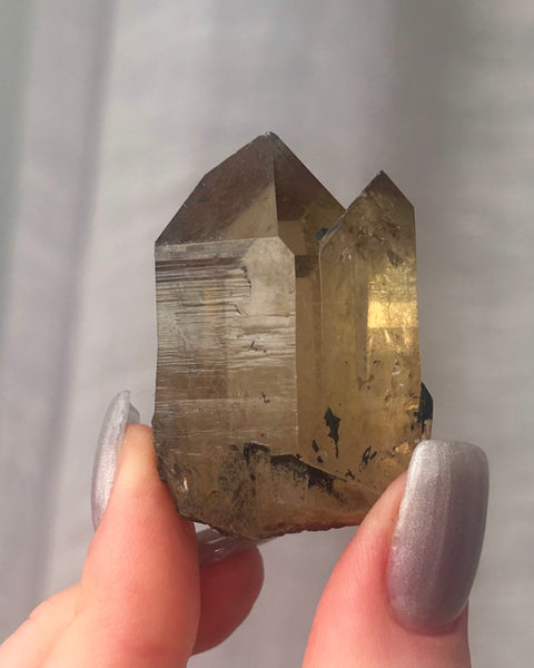 Citrin kallas den gula varianten av kvarts som får sin färg från järn. Den mesta Citrin på marknaden är egentligen bränd/uppvärmd Ametist och kan vara väldigt mörkgul i färgen. Naturliga citriner har oftast blekgul färg, men i sällsyntare fall kan den ha en rik och stark gul färg.