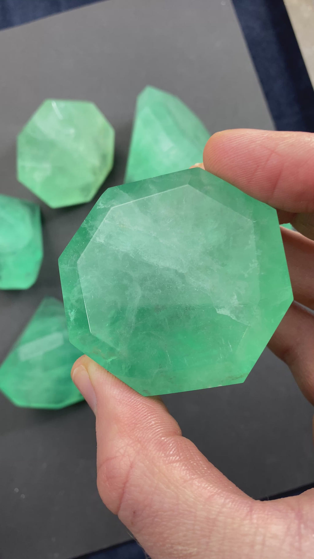 Riktigt fin Fluorit i härligt grön färg. Slipad.