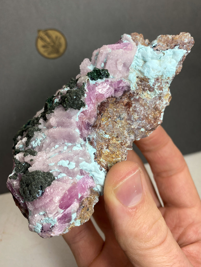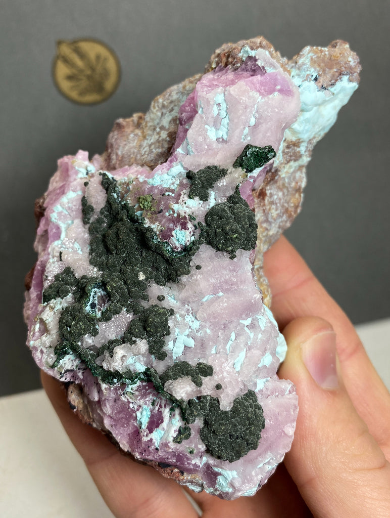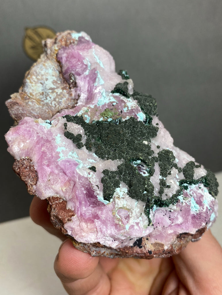 Vackert rosa kluster av Kobolt Kalcit med Kolwezit och Krysokolla!