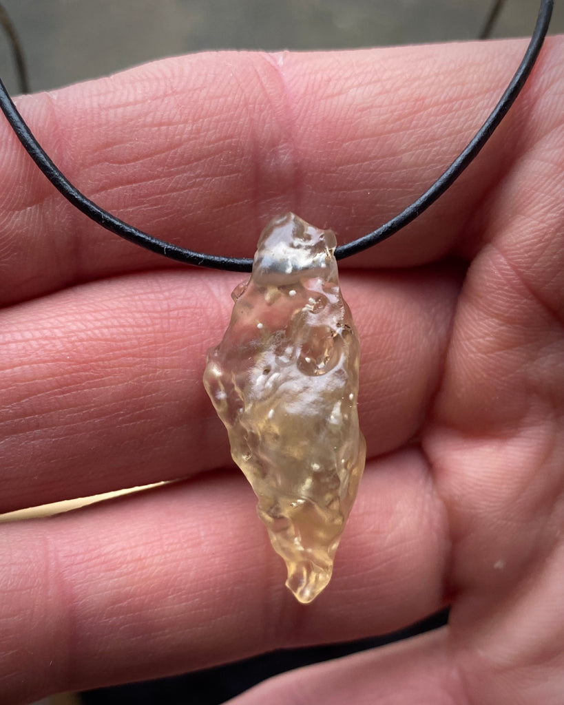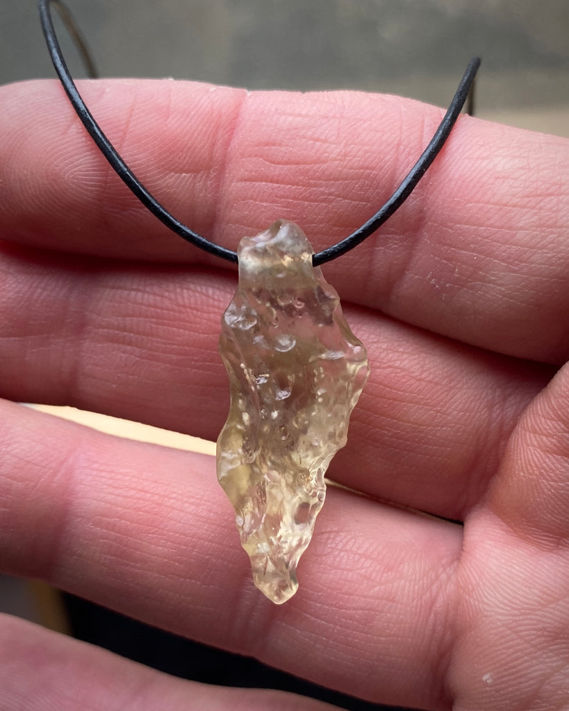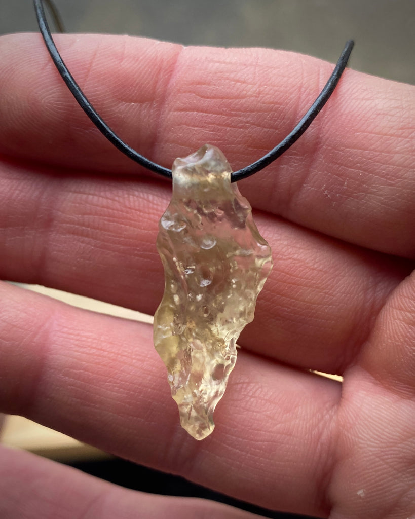 Fin bit Libyskt Ökenglas på halsband av justerbart läderband.