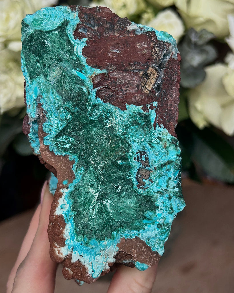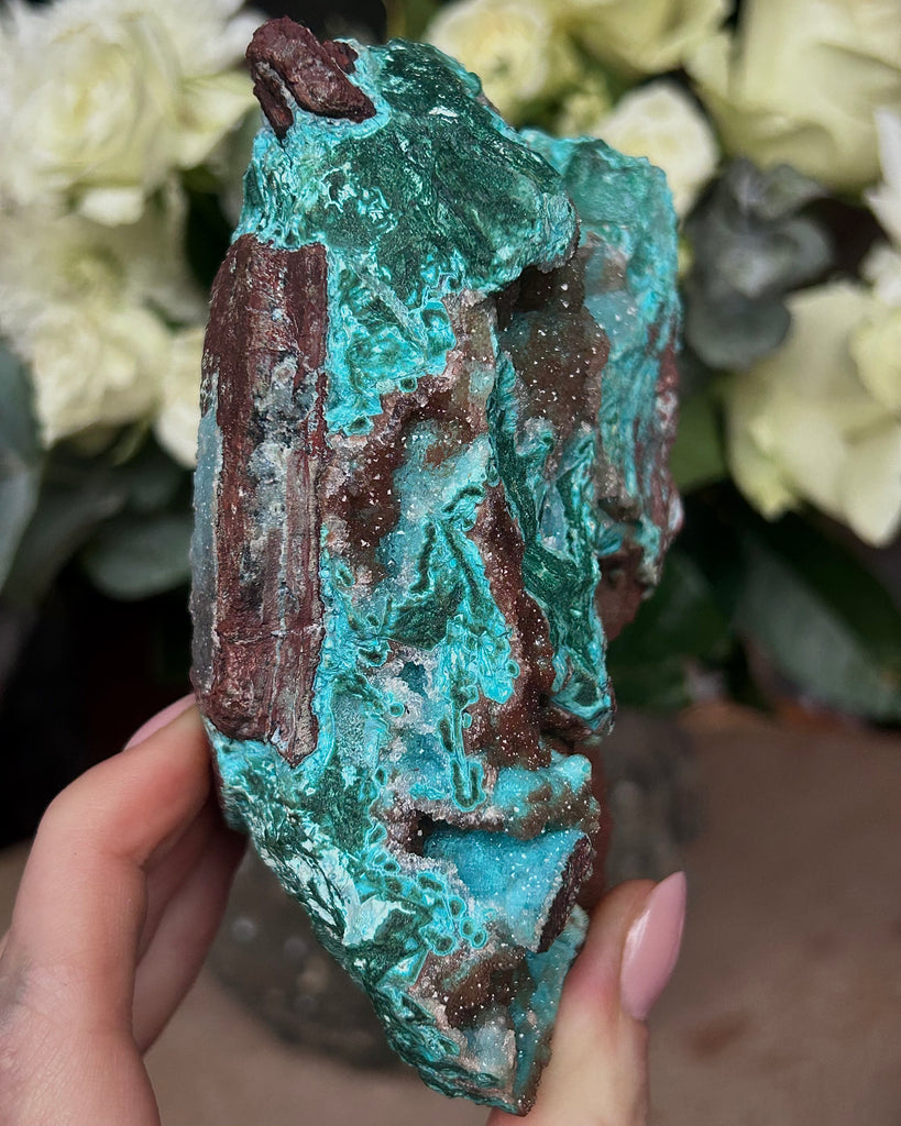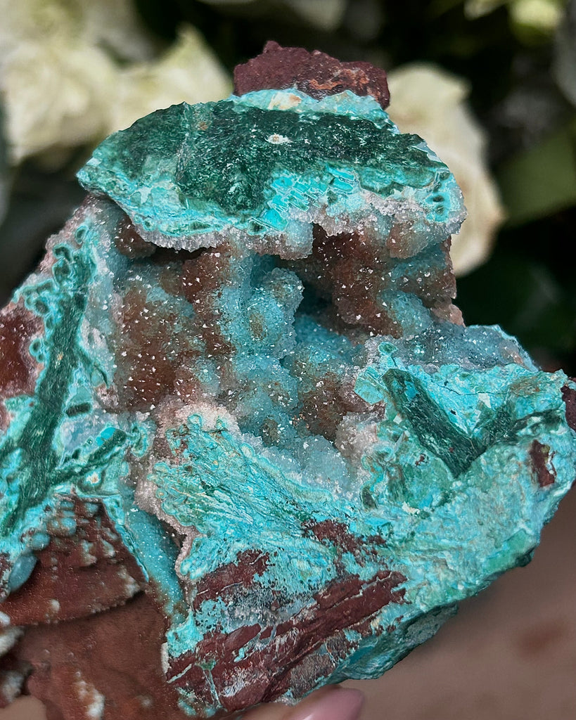 Fin stor bit av Druzy Krysokolla med Malakit.