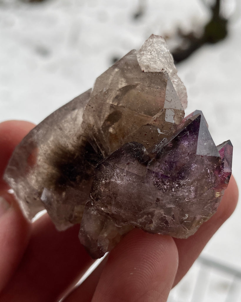 Ametist och rökkvarts från Brandberg området i Namibia. Härifrån kommer några av världens kanske mest eftertraktade kristaller.