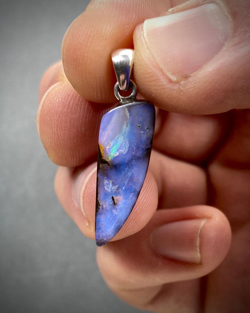 Slipad Boulder Opal. Med silverögla (925 silver).