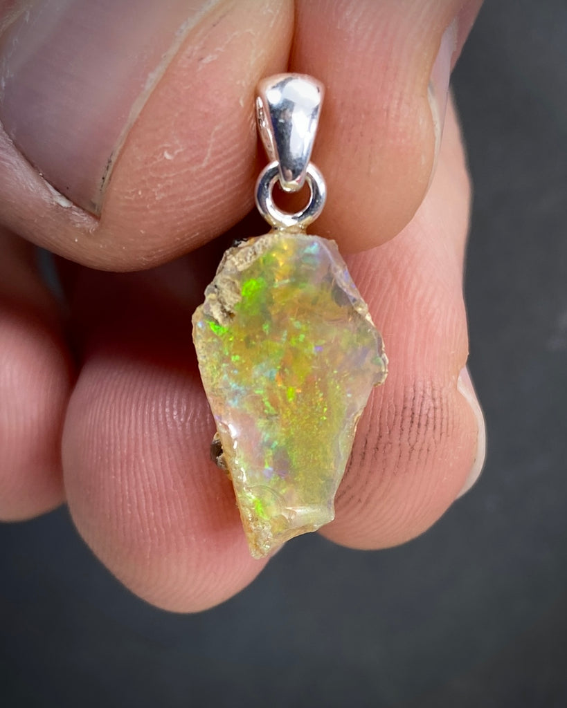 Rå Welo Opal. Med silverögla (925 silver).