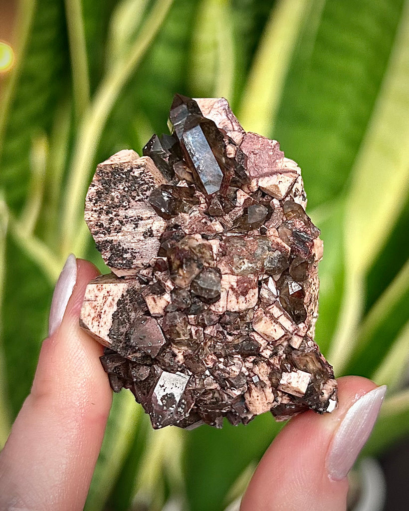 Riktigt fint kluster av Rökkvarts på Fältspat.