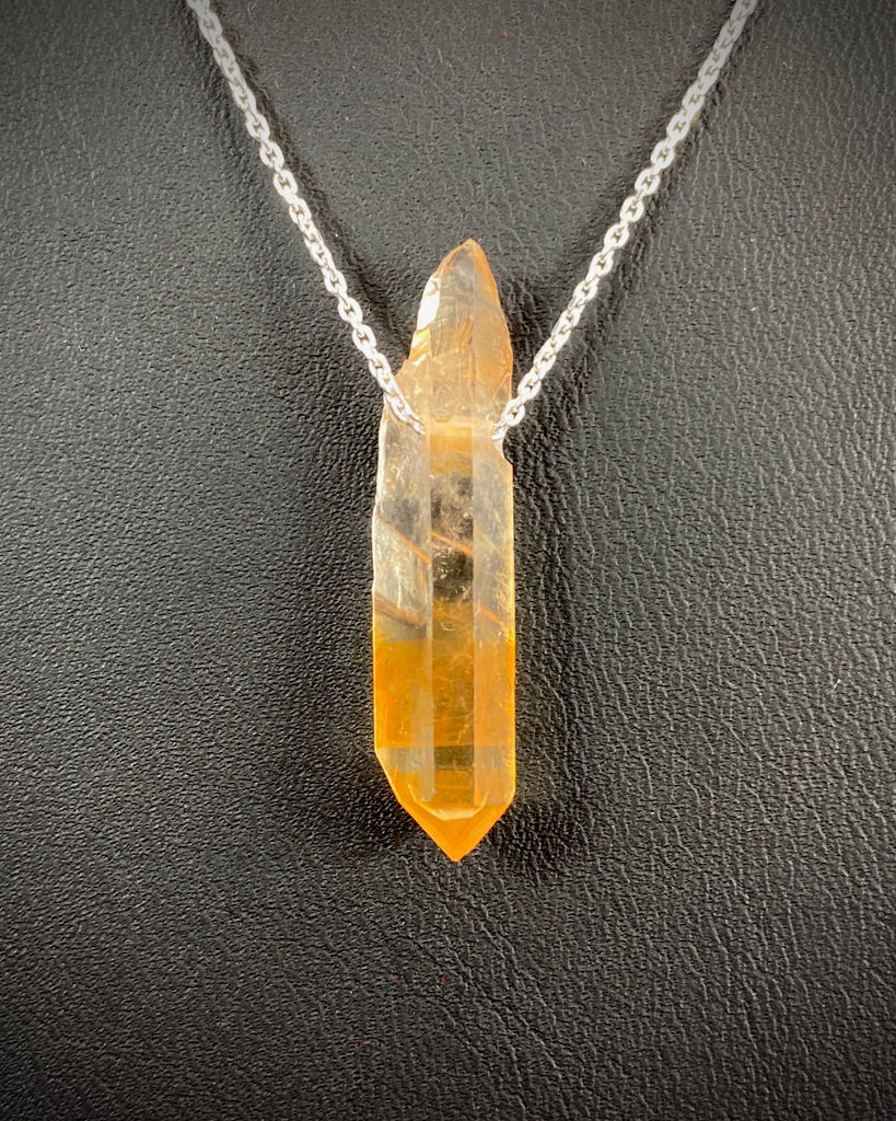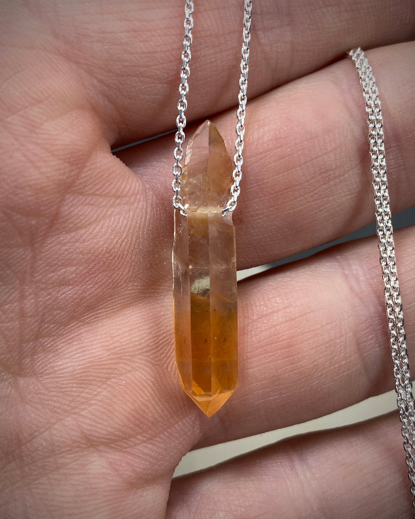 Rå Tangerin kvarts kristall med silverkedja (925 silver).