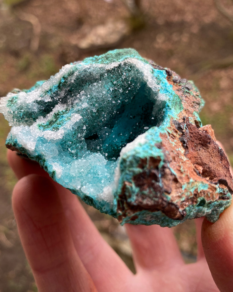 Fint exemplar av Krysokolla med inslag av Malakit och ett täcke av Druzy kvarts.