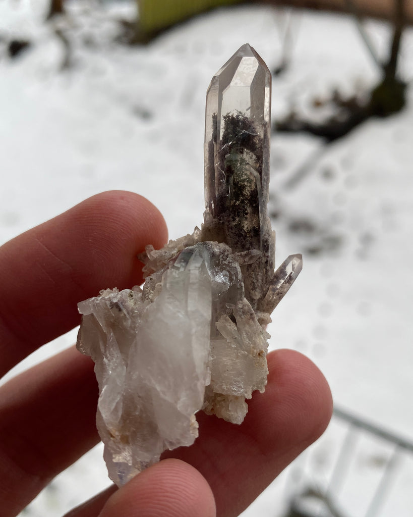 Lodolit är en Bergkristall med inneslutningar av Klorit, Hematit, Fältspat eller andra mineraler. Färgen på inneslutningen avgörs av mineralet i fråga, vanligtvis är det Klorit.